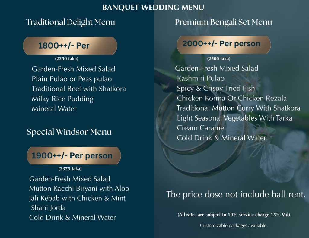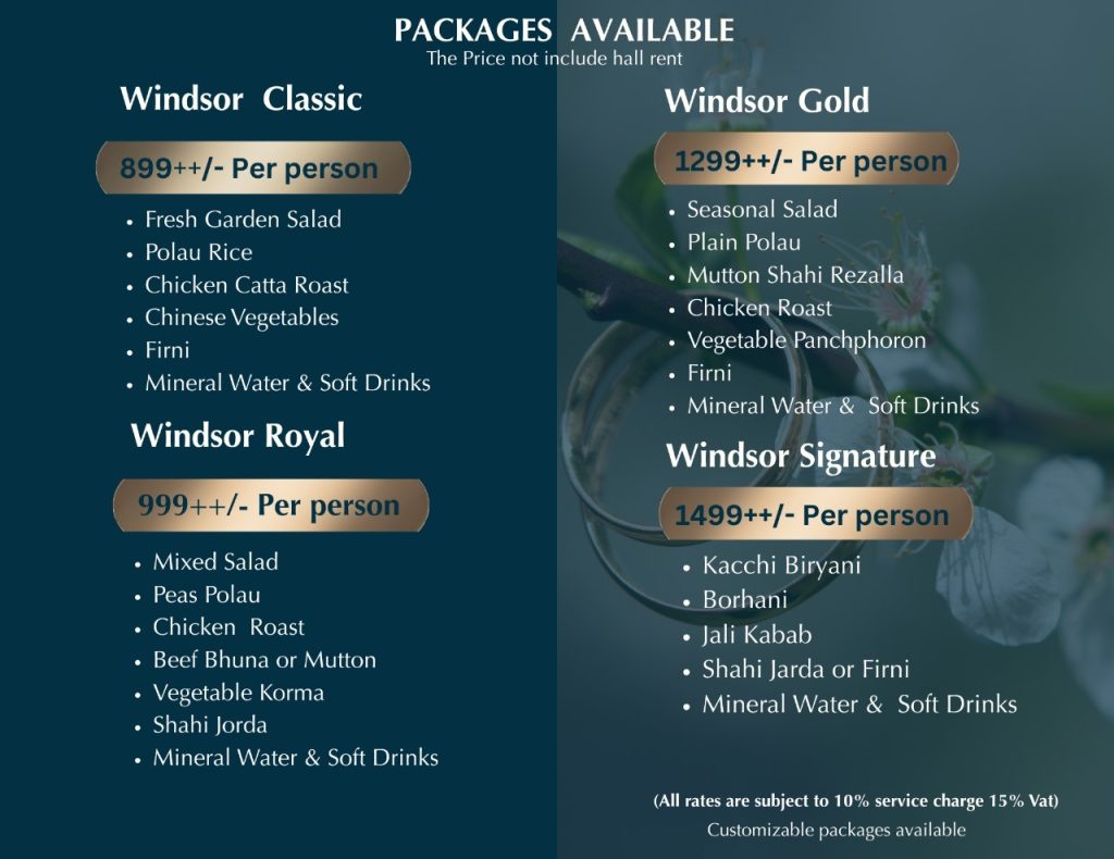 At Windsor Hotel, we turn your dreams into unforgettable memories. Whether you’re planning an intimate gathering or a grand celebration, our elegant banquet spaces, professional event team, and customizable services ensure a flawless wedding experience. Let your special day unfold in timeless style with curated décor, gourmet catering, and dedicated coordination.